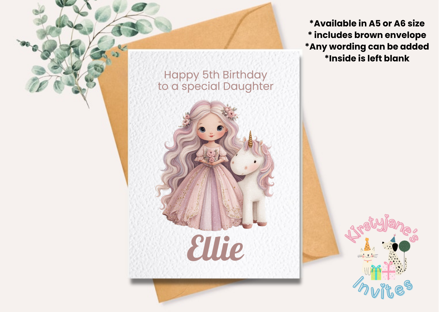 Birthday greetings card girl princess unicorn