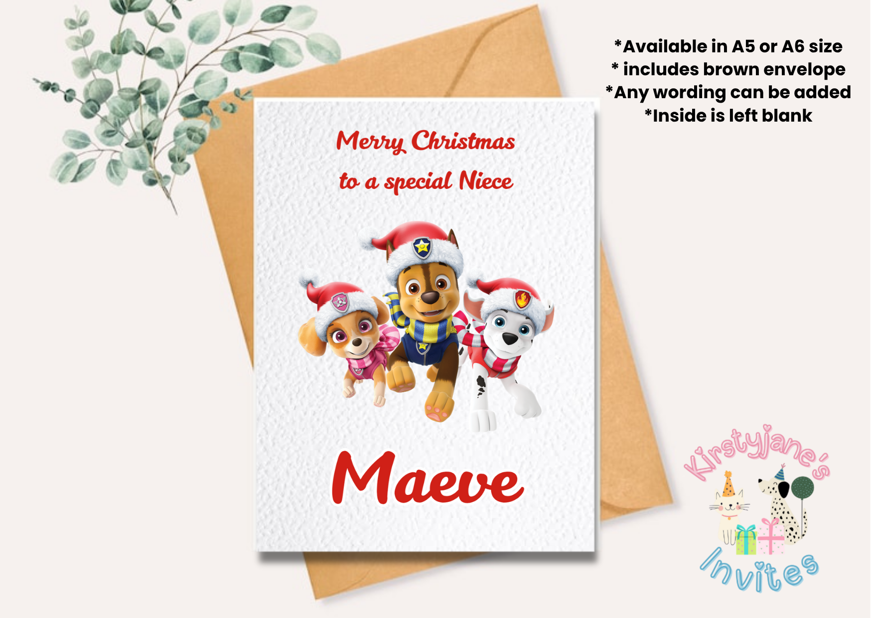 Christmas greetings card Paw Patrol Chase Skye Marshall