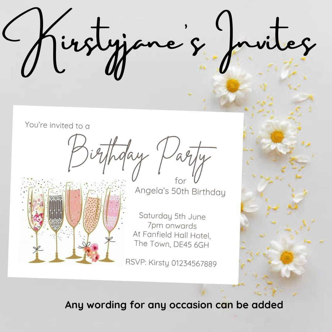 Personalised Adults champagne party birthday invitations