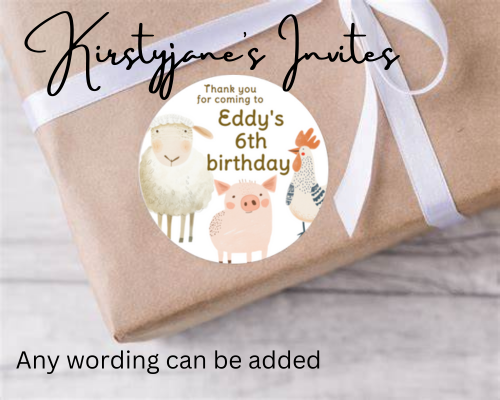Personalised birthday party Farm Animals stickers