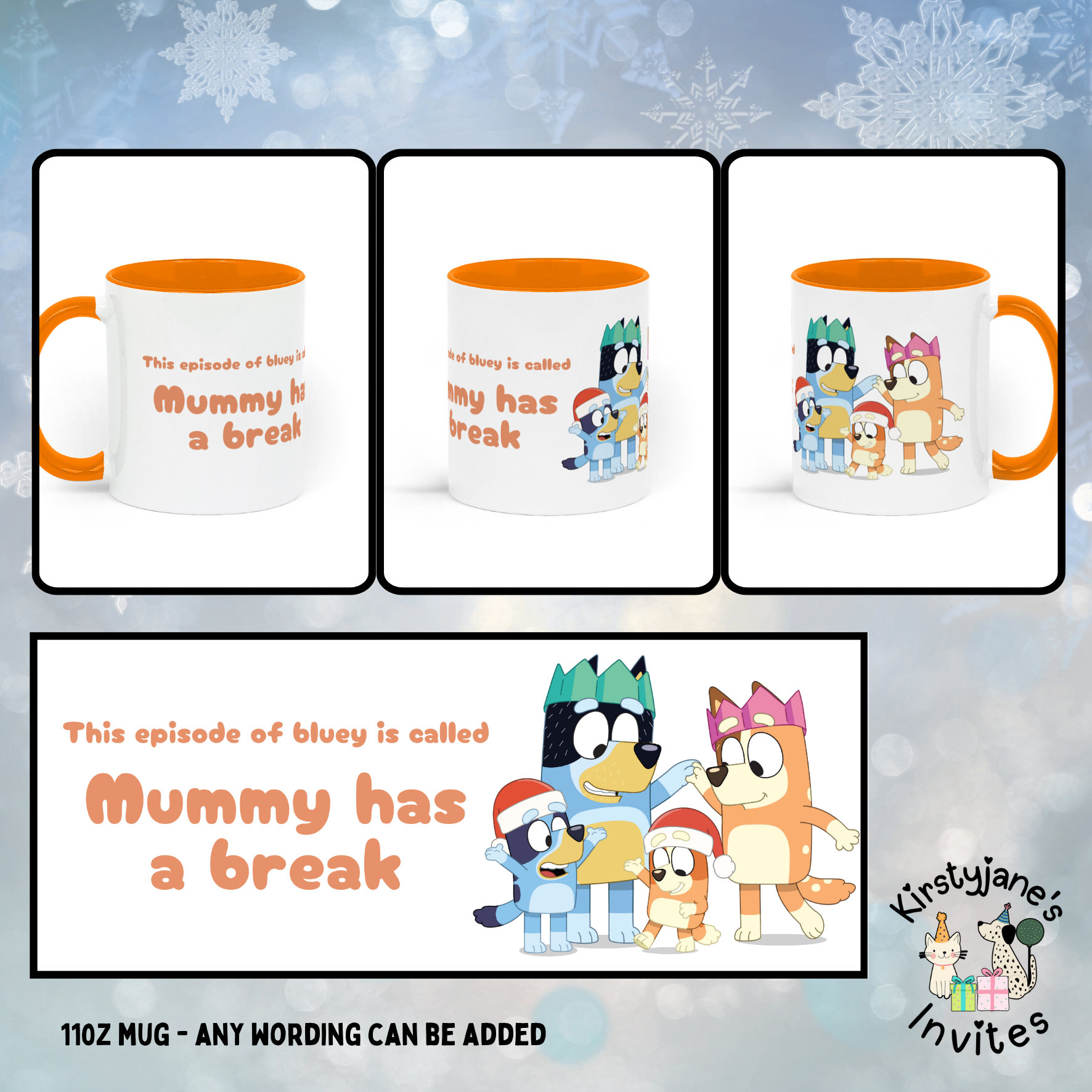 BLUEY mug chirstmas gift mummy daddy nanny grandad auntie uncle son daughter