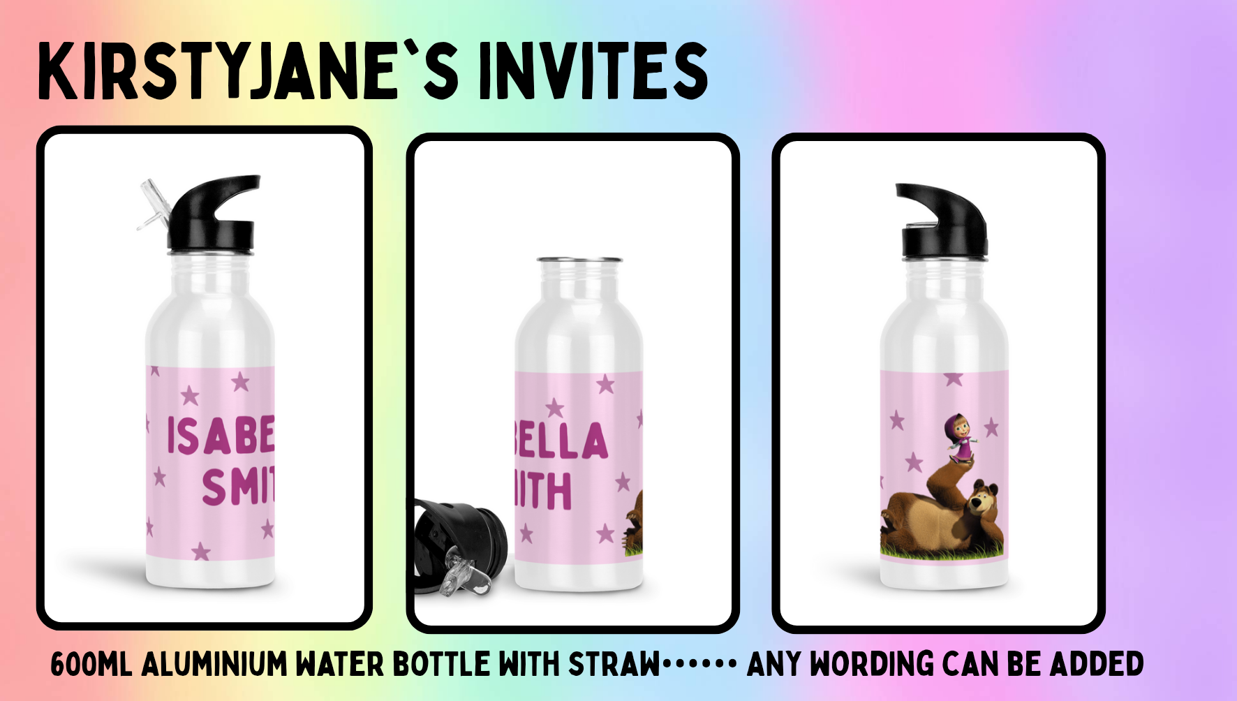 Personalised 600ml Aluminium drinks bottle with straw Masha and the bear