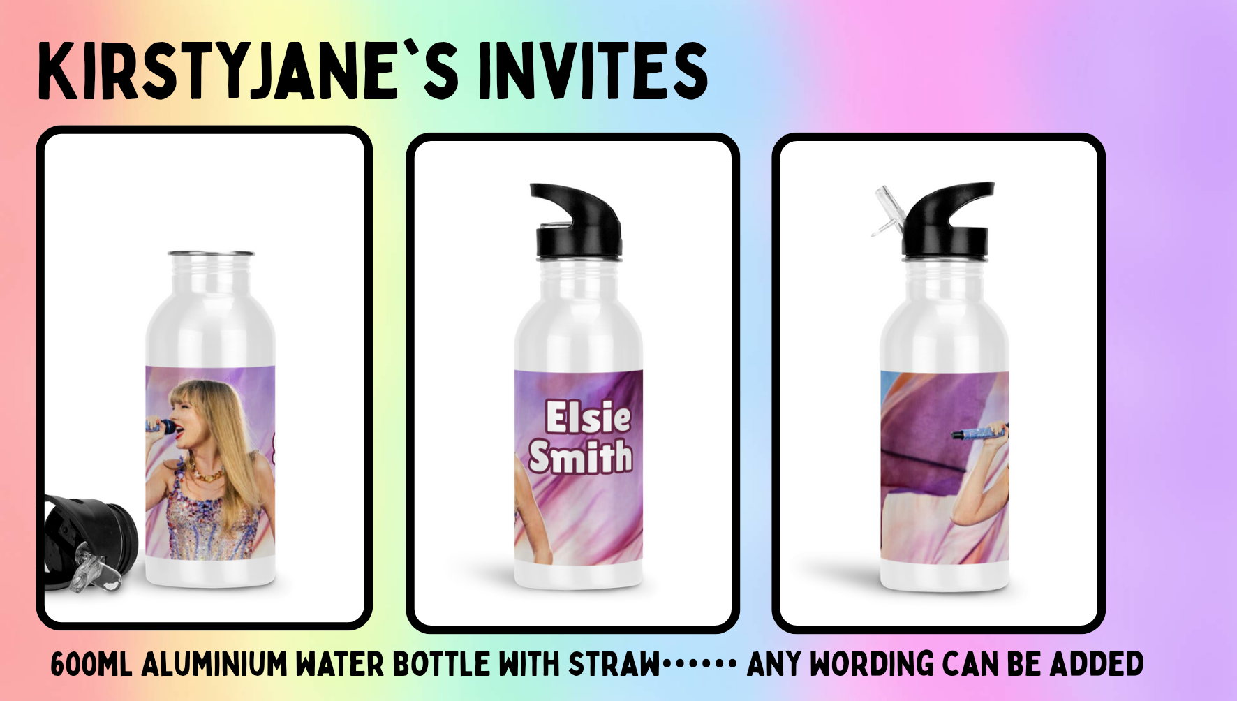 Personalised 600ml Aluminium drinks bottle with straw Taylor swift