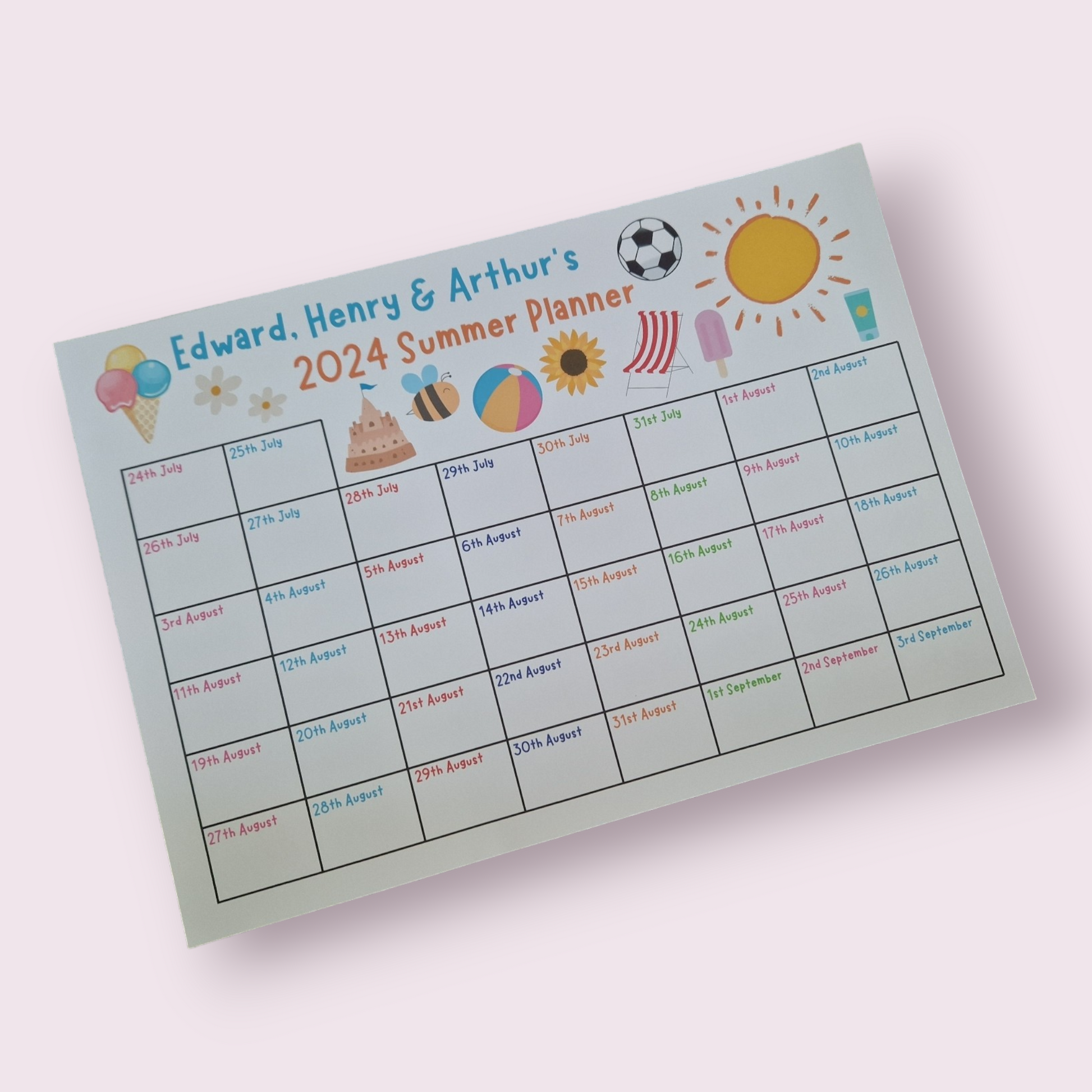 Personalised summer planner wall chart